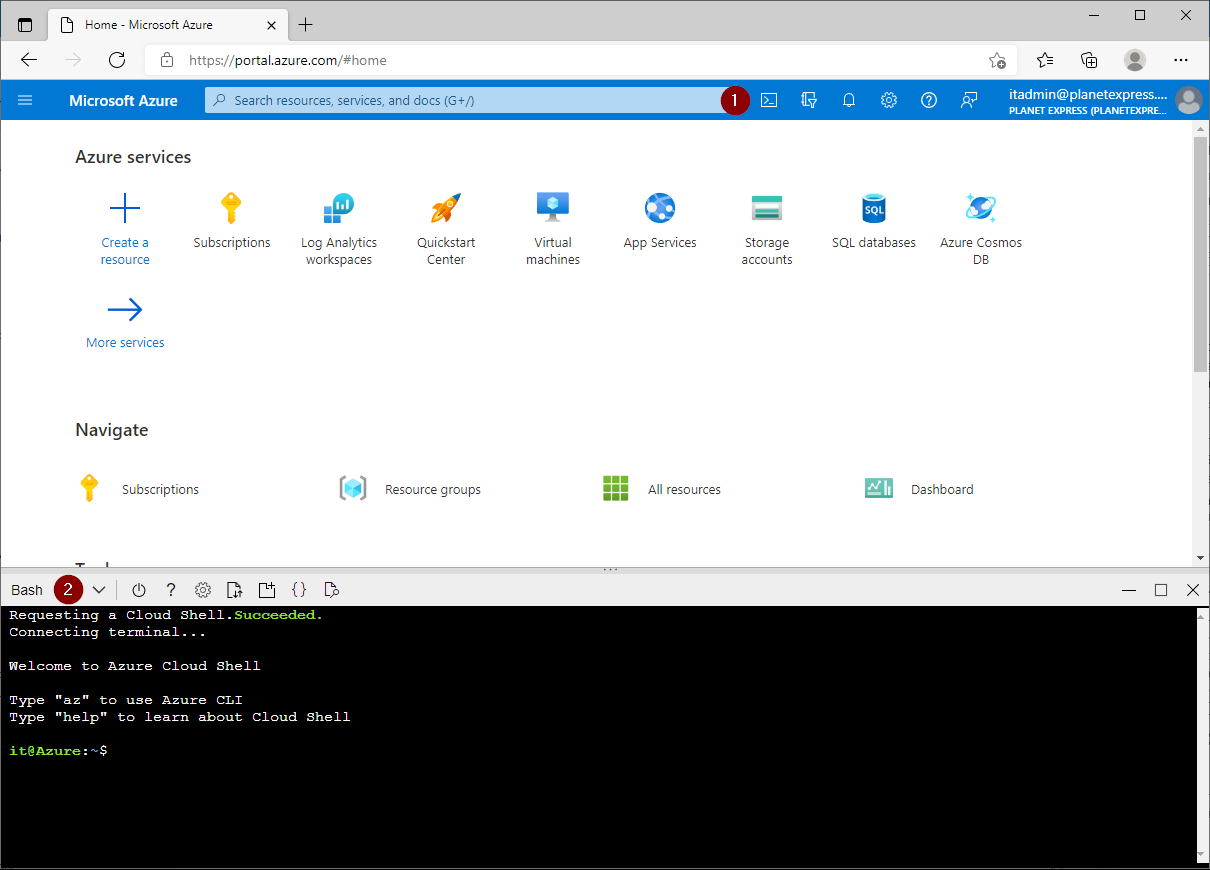 Change to the Bash shell / Azure CLI