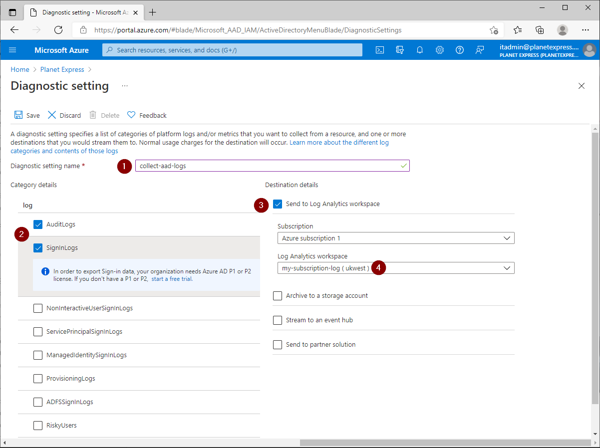 - Diagnostics setting name: collect-aad-logs