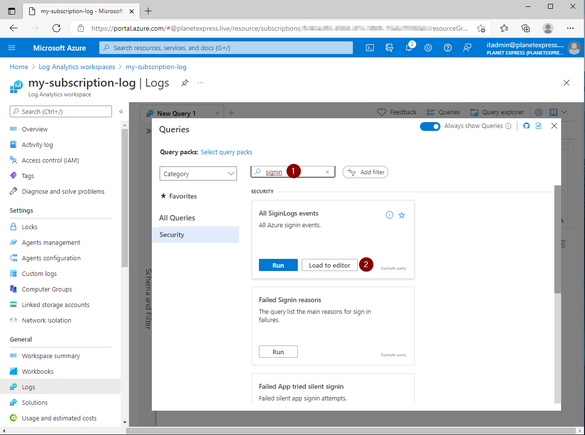 Select All SigninLogs events - Load to editor
