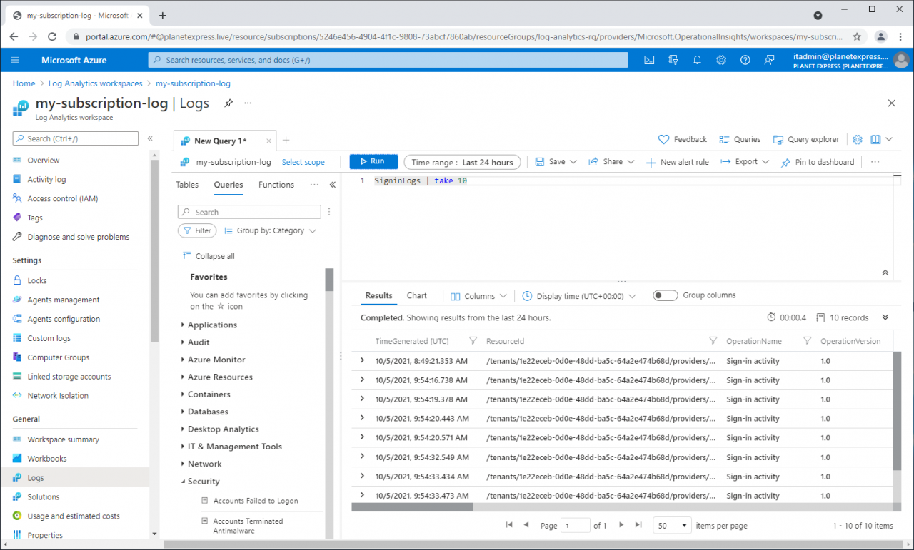 Query Azure AD sign-in logs using Log Analytics