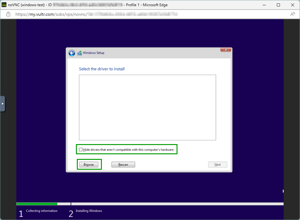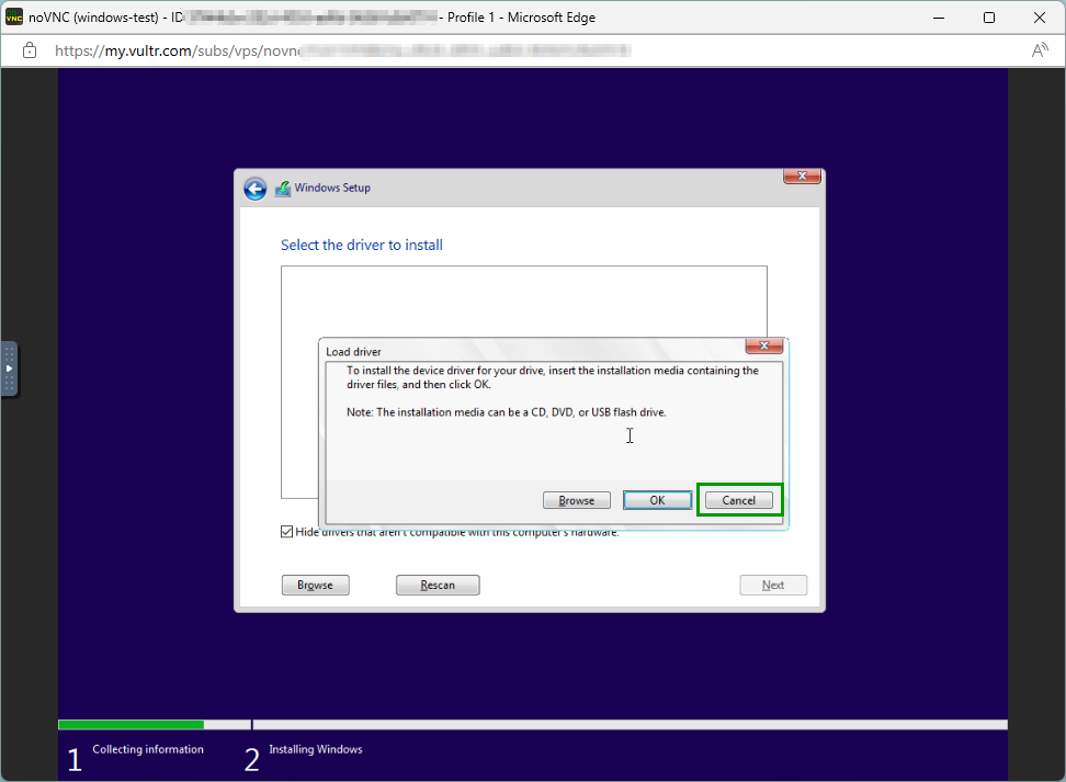 How to load VirtIO storage drivers during Windows 10 setup on Vultr VPS