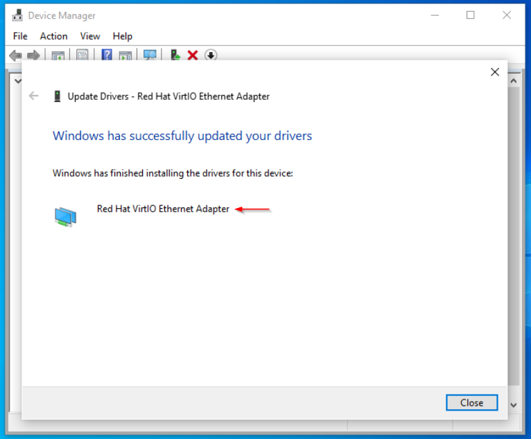 Once Windows setup has finished, you can install the missing VirtIO device drivers from the ISO.