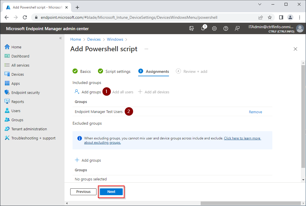 Deploy PowerShell registry script for disabling BitLocker notifications using Endpoint Manager