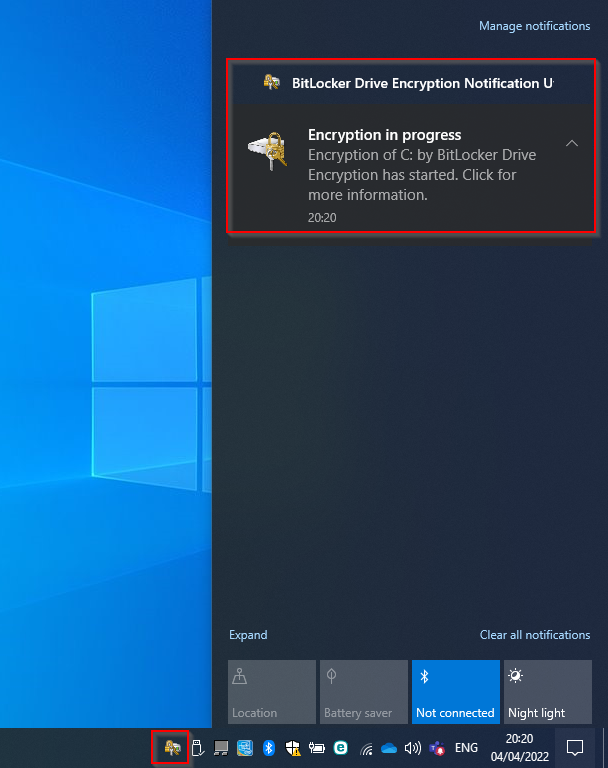 Example: BitLocker "Encryption in progress" Windows toast notification