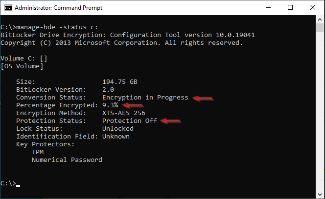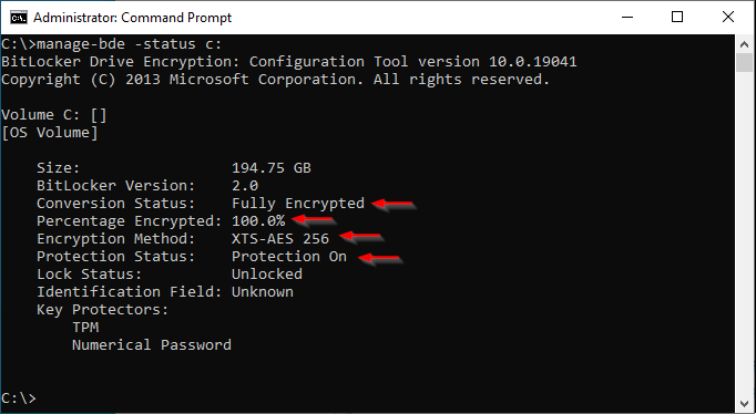 In this example, both the laptop's OS drive and fixed drive are not encrypted