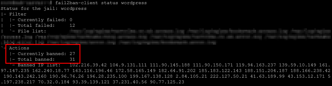 fail2ban-client status wordpress