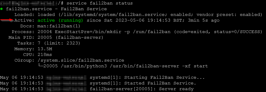 Check the fail2ban service